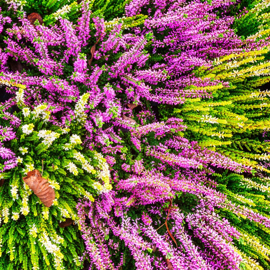 El brezo es una planta perenne de la familia botánica de las Ericáceas. También se conoce como Callune o Calluna Vulgaris. El nombre Calluna procede del griego antiguo «kalluno», que significa barrer o limpiar. Se refiere a los tallos sólidos y leñosos del brezo, que antiguamente se utilizaban para fabricar escobas. En términos prácticos, el brezo es un subarbusto retorcido cuyas ramas de color marrón rojizo pueden alcanzar hasta 1 metro de altura. Unidas directamente al tallo, las hojas de la planta son pequeñas, perennes y opuestas. Adoptan la forma de pequeñas escamas entrelazadas en 4 filas. Inicialmente verdes, las hojas del brezo se vuelven marrones al llegar el otoño. El calluno florece entre junio y diciembre. Las flores se agrupan en racimos irregulares y tienen una corola de 4 lóbulos. Reconocibles por su forma acampanada, las flores del brezo pueden ser moradas, blancas o rojas. En la naturaleza, sin embargo, los colores van del rosa y el malva al violeta. El fruto del brezo es una pequeña cápsula con 4 cámaras en total. Sus semillas son diminutas y peludas y sus raíces leñosas. Al brezo le gustan especialmente los suelos soleados, pero ligeramente sombreados, ligeramente ácidos y silíceos. Sobre todo en páramos, claros, márgenes y prados. Este subarbusto se encuentra fácilmente en toda Europa, así como en Norteamérica y Rusia. También se encuentra en el noroeste de Asia. El brezo es conocido por su excepcional resistencia y longevidad. Puede encontrarse en estado salvaje a altitudes de hasta 2.500 m. Ideal como cubierta vegetal, el brezo puede vivir hasta 50 años. La tierra de brezo también es muy popular entre los jardineros. Tiene la ventaja de ser muy rico en humus. La calluna es una planta melífera muy atractiva para los insectos polinizadores.