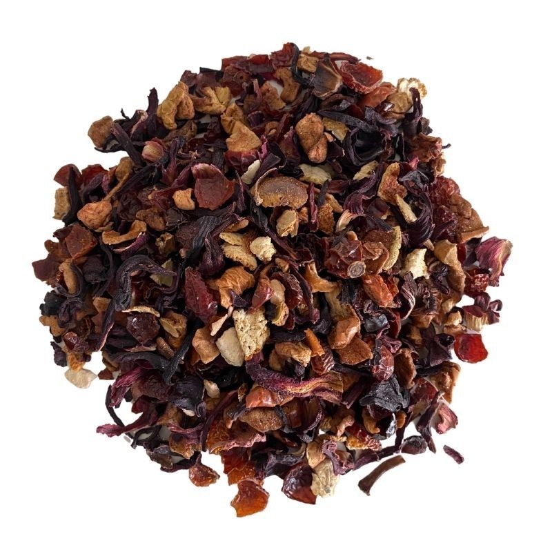Lassen Sie sich von der erhabenen Mischung aus ..hibiskus, Apfel, Hagebutte, Orange, Aroma.