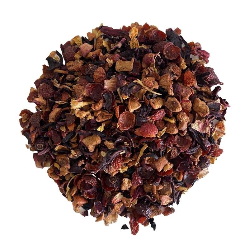 Lassen Sie sich von dieser herrlichen Mischung aus Hagebutte, Apfel, Hibiskus, Jasmin, Sonnenblume, Aromen.