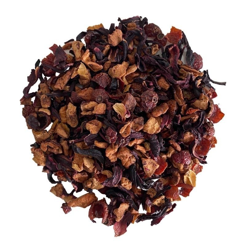 Lassen Sie sich von der erhabenen Mischung aus Apfel, Hagebutte, Hibiskus, Wildkirsche (3%) und Aromen tragen.
