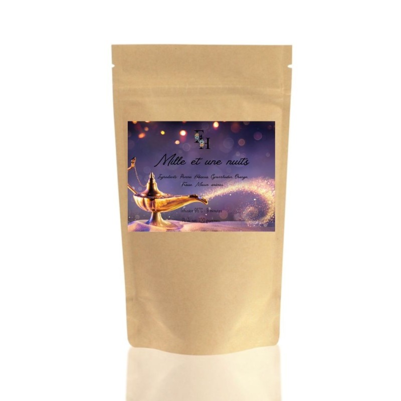 Cette infusion évoque les contes orientaux avec une combinaison envoûtante de saveurs exotiques. Conçue pour offrir une expérience sensorielle riche et relaxante, elle est idéale pour les moments de détente ou pour une pause aromatique.