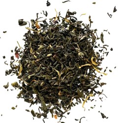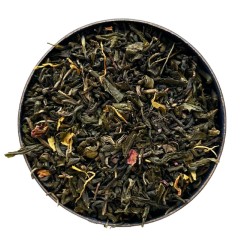 Le thé vert "Jardin Céleste" est accompagné de douces saveurs de vanille & bergamote.