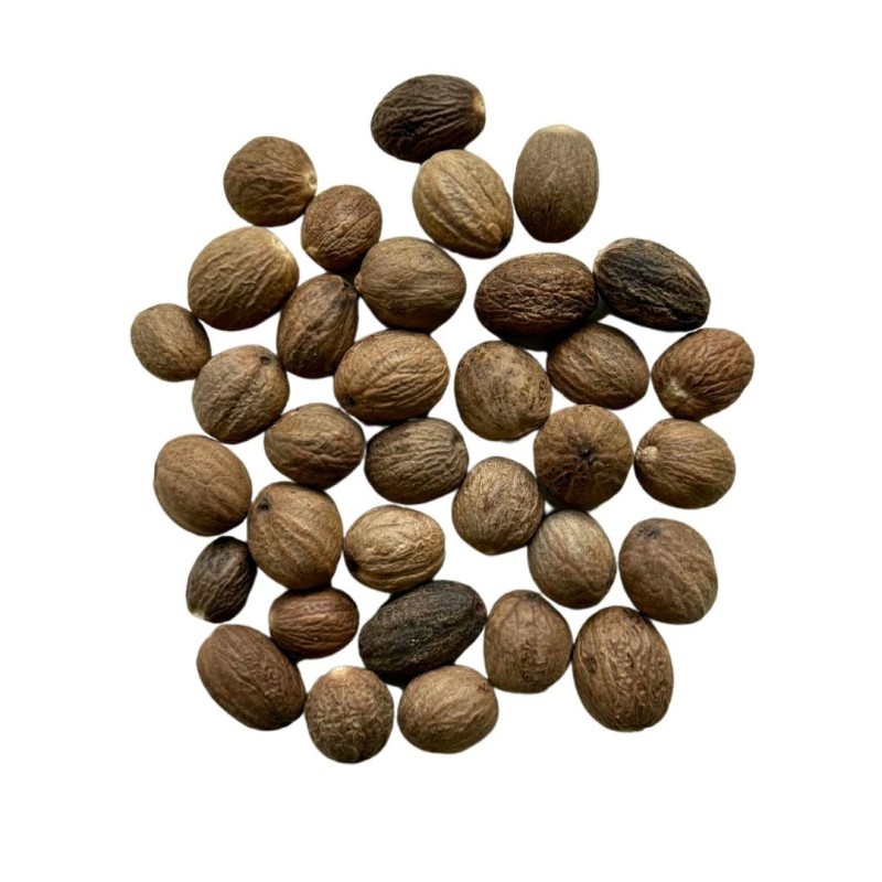 La noix de muscade, originaire des îles Moluques, est utilisée depuis des siècles pour ses propriétés aromatiques et médicinales. Elle était très prisée au Moyen Âge pour ses vertus digestives et stimulantes.